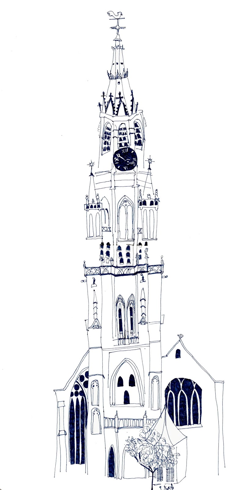 Vuelvo a Delft: Esta ciudad fundada en 1246 tiene un centro histórico, donde se pueden encontrar construcciones antiquísimas, tipo siglo XVI o XVII, muchas remodeladas y en uso. Las dos iglesias que hay en la plaza principal son full Edad Media de los años 1350 y 1496.