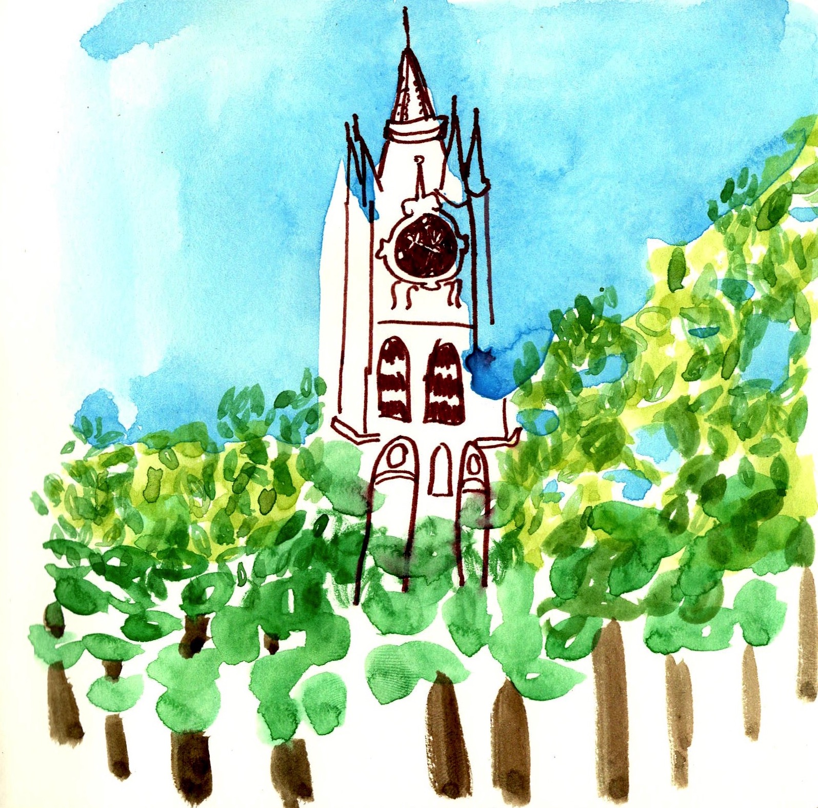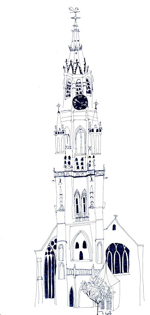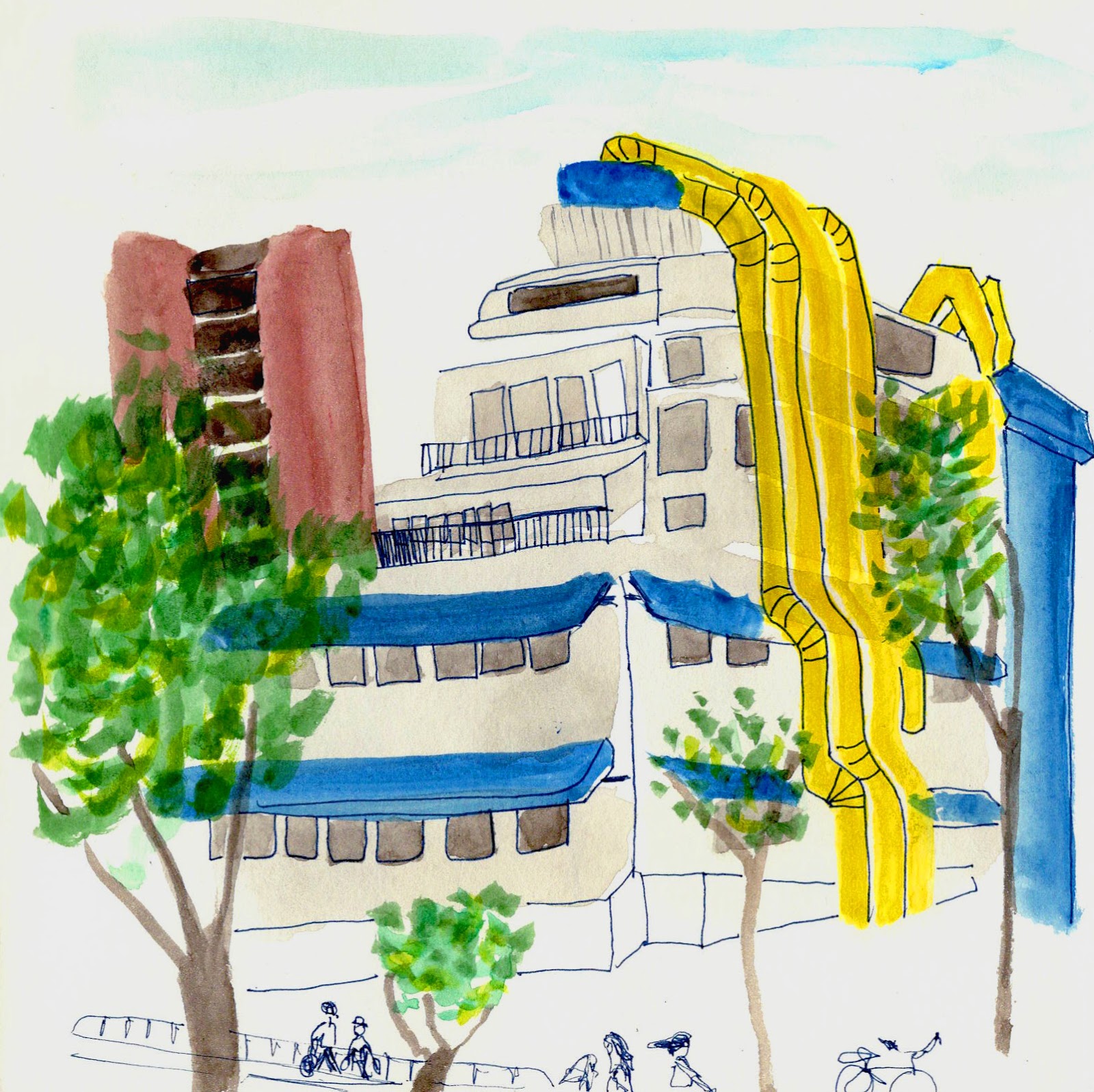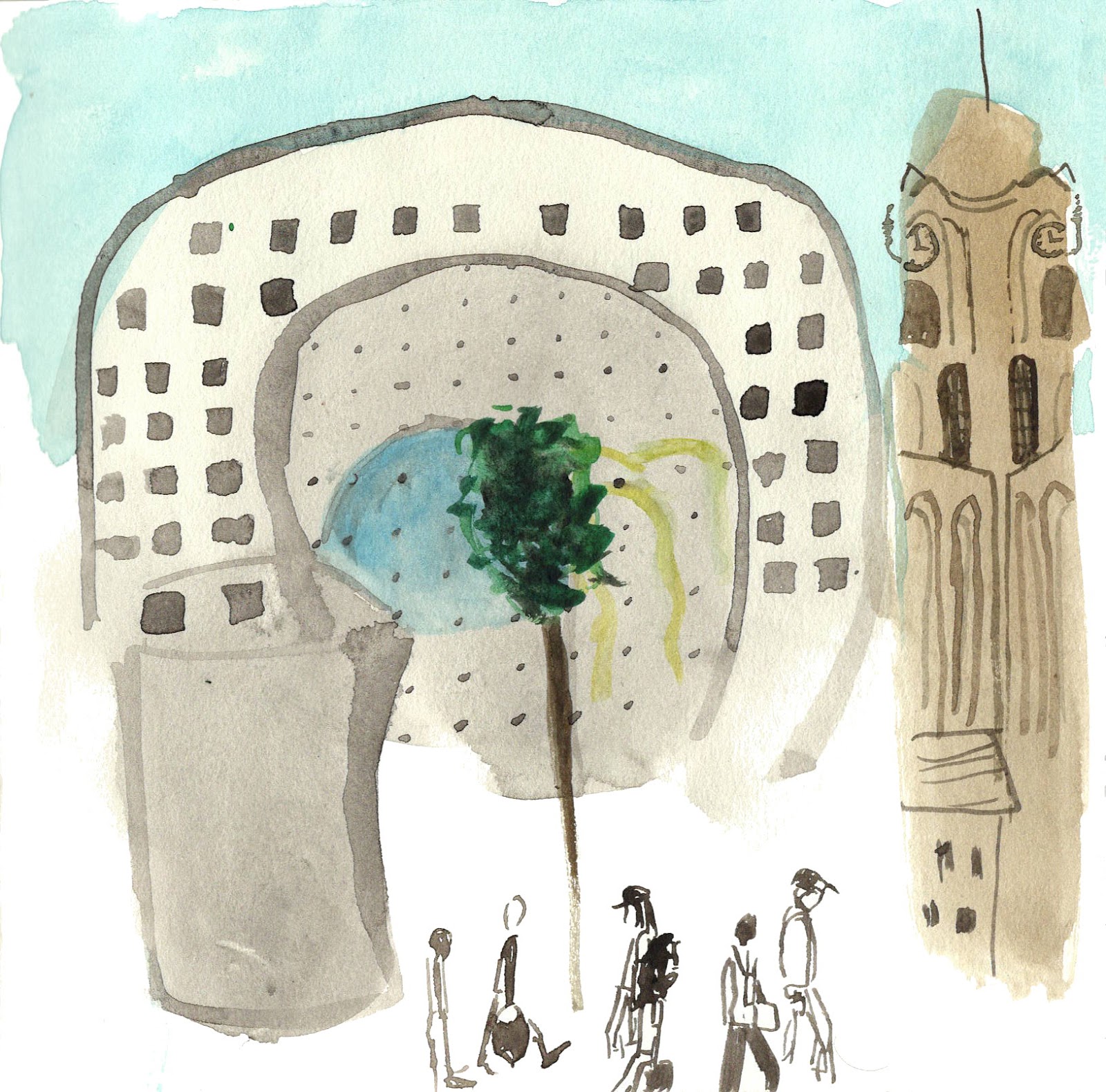 | Biblioteca pública de Rotterdam. Está frente al mercado y mientras hacía este dibujo la gente se sentaba al lado mío para mirar y lo encontraban bonito, eran muy buena onda. |